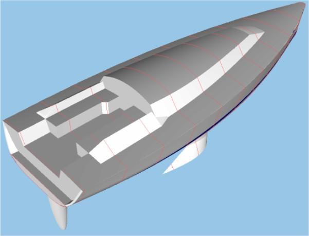deriva sportiva in radius chine - CAD skiff performante con trapezio o deriva sportiva zavorrata con grande stabilità. L'economia del compensato marino per una barca performante in legno/epoxy con scafo radius chine.Sviluppata sul modello del minitransat Didi Mini Mk3. Con trapezio doppio come skiff ad altissime prestazioni o zavorrata come deriva...