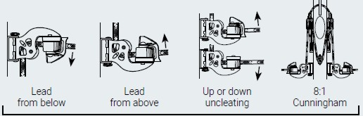 La puleggia può essere riposizionata per consentire l'ingresso dal basso della scotta