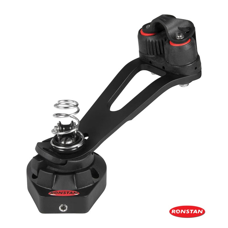 torretta girevole con C-Cleat™ Small e guida scottabase su cuscinetti a sfera - per paranco scotta randa - con fermo a cricchetto commutabile per mantenere la posizione o per consentire la rotazione completa a 360° - l'angolo di ingresso può essere impostato in due posizioni: un kit incluso permette un terzo angolo più alto. - C-Cleat™ Small con...