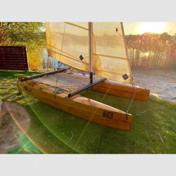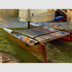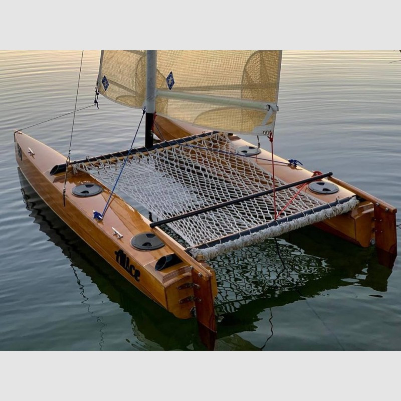 Il rig è composto da un piccolo fiocco e una randa steccata full batten inferita nell’albero in alluminio con una tasca, come nel Laser. Strallo e sartie sono assicurate all’albero attraverso piccole maniche della tasca. Gli scafi possono contenere gavoni e possono essere resi stagni per garantire l’inaffondabilità.