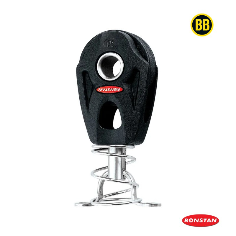The proven Ronstan 2-stage bearing system (Series 30 and larger) features high compression grade Acetal ball bearings and a secondary full-contact bearing. This gives minimum friction across the full working load range. The sheave and bearing system is supported by a fibre-reinforced load frame, computer modelled and optimised using advanced stress analysis methods. The Dyneema® Link, used in multi-sheave blocks, is produced from high spec SK75 fibre, which is 10 times stronger and lighter than steel, and provides the final connection from the block to the load point. Simple, versatile and secure attachment The single block is easily lashed to an attachment point, and can also accept Dyneema® Links and shackles for a variety of efficient attachment alternatives. The Dyneema® Link used in multi-sheave blocks is easily fitted and secured by a removable pin. The Dyneema® Link can also be removed and replaced by a shackle, custom lashing or strop. These blocks are far more compatible with Dyneema®/Spectra® lines, carbon laminate connection points and webbing than traditional blocks with steel loop tops or shackles. Low profile and compact The two way head in the single lashing block allows for alignment at 0° or 90° orientation, while the single swivel block allows for full articulation. The flexible Dyneema® Link used in multi-sheave blocks provides 0° or 90° orientation. It connects directly to the head of the block rather than to an intermediate head post. This reduces weight and gives the lowest possible profile while allowing full articulation. Beckets have been carefully designed to minimise height. High performance cleating Ronstan BB Orbit Blocks™ feature strong, lightweight fibre-reinforced cleat arms optimised at the required cleating angle. Race-proven, carbon-fibre reinforced Ronstan C-Cleats give secure rope holding with low entry and exit efforts, and are fitted with fairleads for fast action from any angle. *RF35100 & RF35100D have stainless steel head posts & shackles.