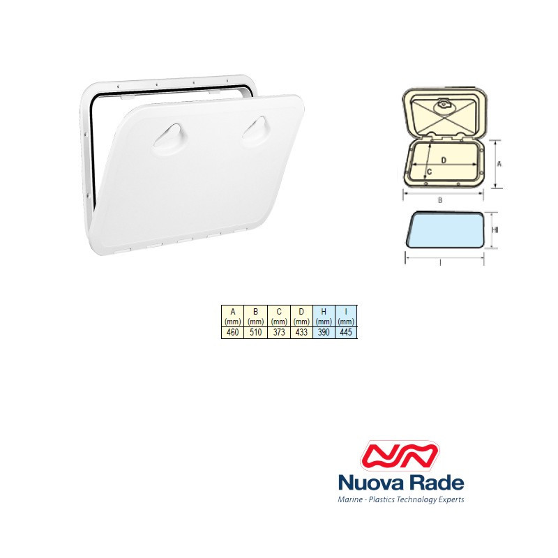 Alluminio Anodizzato con vetro in Acrilico di perfetta tenuta grazie alla lavorazione in monoblocco estruso ed alla guarnizione a doppio attacco. Grande visibilità grazie alla maniglia piatta. Spessore paratia massimo 27 mm.