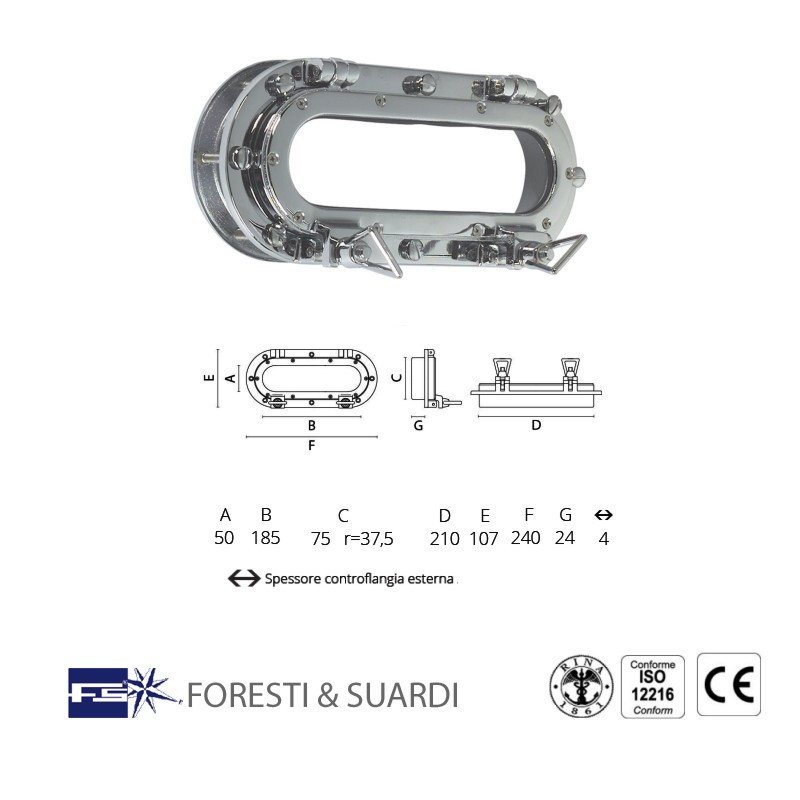 Modello Approvato Direttiva CE 94/25/C Ottone cromato 104x233mm spessore flangia 43mm SUPER-OFFERTA fino a esaurimento scorte !