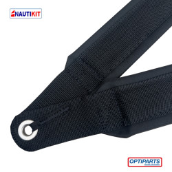 Per Optimist. Realizzata in fettuccia di poliestere resistente e parzialmente rivestita in tessuto antiusura, perfettamente resistente ai raggi UV. È imbottita con una striscia in schiuma che non assorbe acqua.