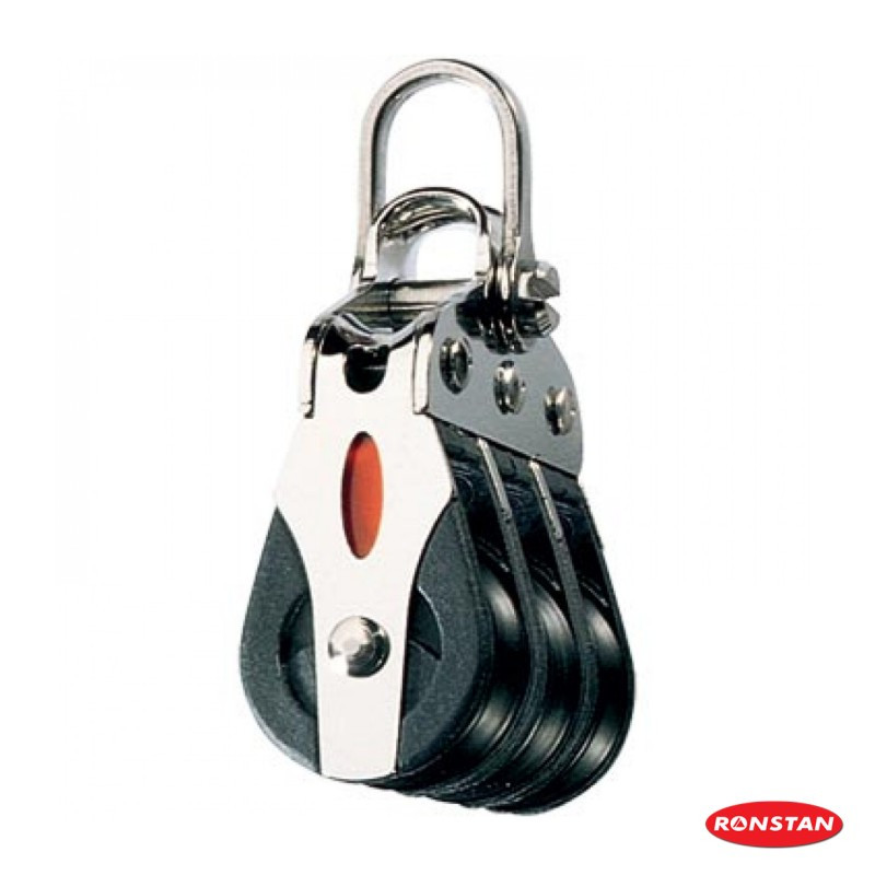 bozzello triplo con grillo e arricavo. Per vang, caricabasso, carrelli e paranchi vari su derive e multiscafi