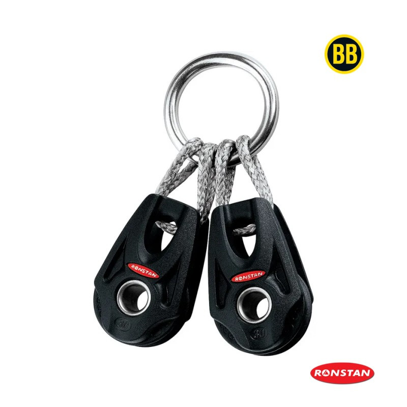 Doppio bozzello con stroppo in Dyneema® - serie Orbit™ Ø30   pulegge in acetale di carbonio con doppia serie di cuscinetti    Sistema di bloccaggio ad alte prestazioni Leggero, con il carico di lavoro più elevato della sua categoria.  Attacco sicuro e versatile.  Compatto e con basso profilo.  I cuscinetti a sfera a 2 stadi a basso attrito forniscono...